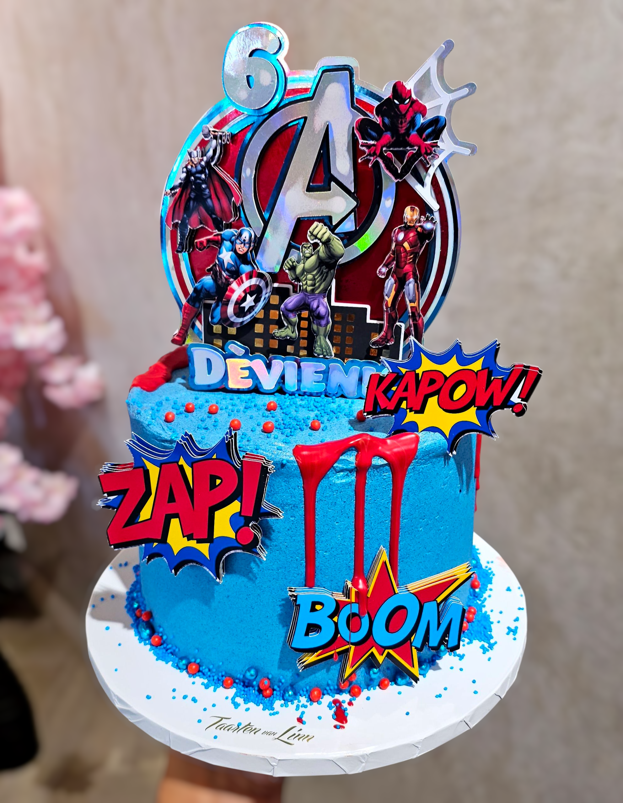Alle superhelden opgelet!!! Deze Avengers taart is super stoer en lekker. Met deze taart is het feest pas écht compleet!