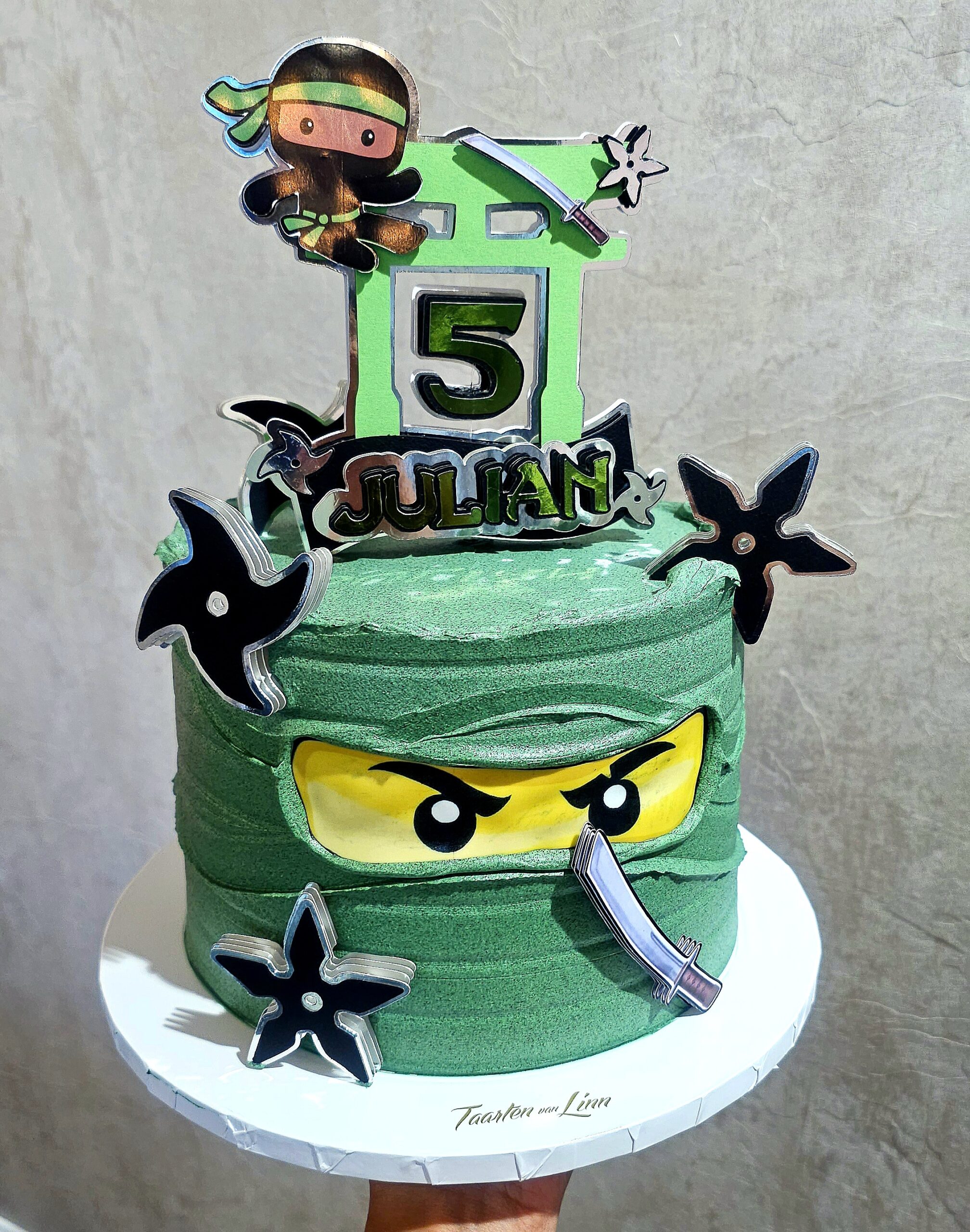 Deze ninja taart is in verschillende kleuren te bestellen.